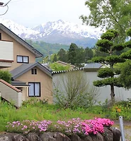 역에서 나오면 정원이 있고 눈덮힌 산맥과 구로베 호수의 절정 풍광이 보이며 고산식물관찰원도 있다.