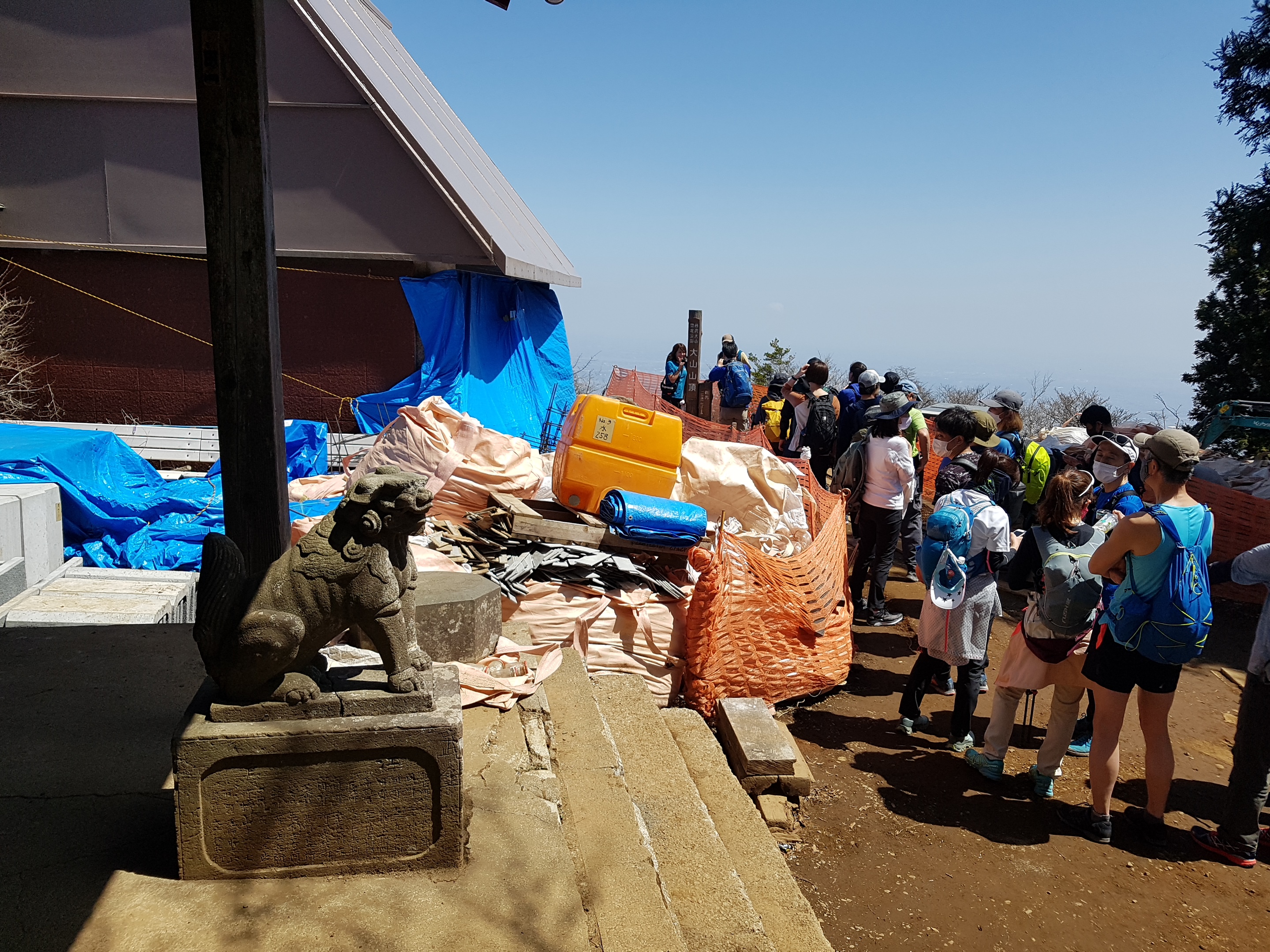 정상의 신사는 지금 수리중으로 어수선하고 정상목에는 인증샷을 찍으려는 산객들로 긴줄이 생겼다.
