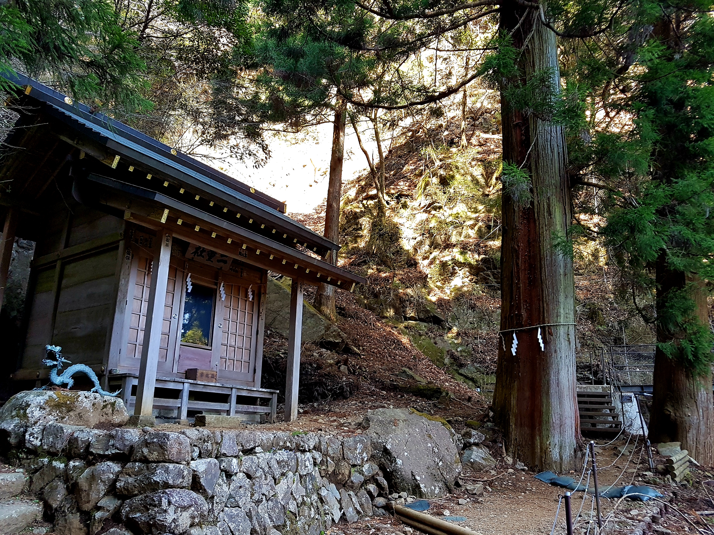 이곳에서 신사를 통해 곧장 올라가는 등산로로 가지 않고 미하라시다이로 가는 길을 택하여 올랐다.