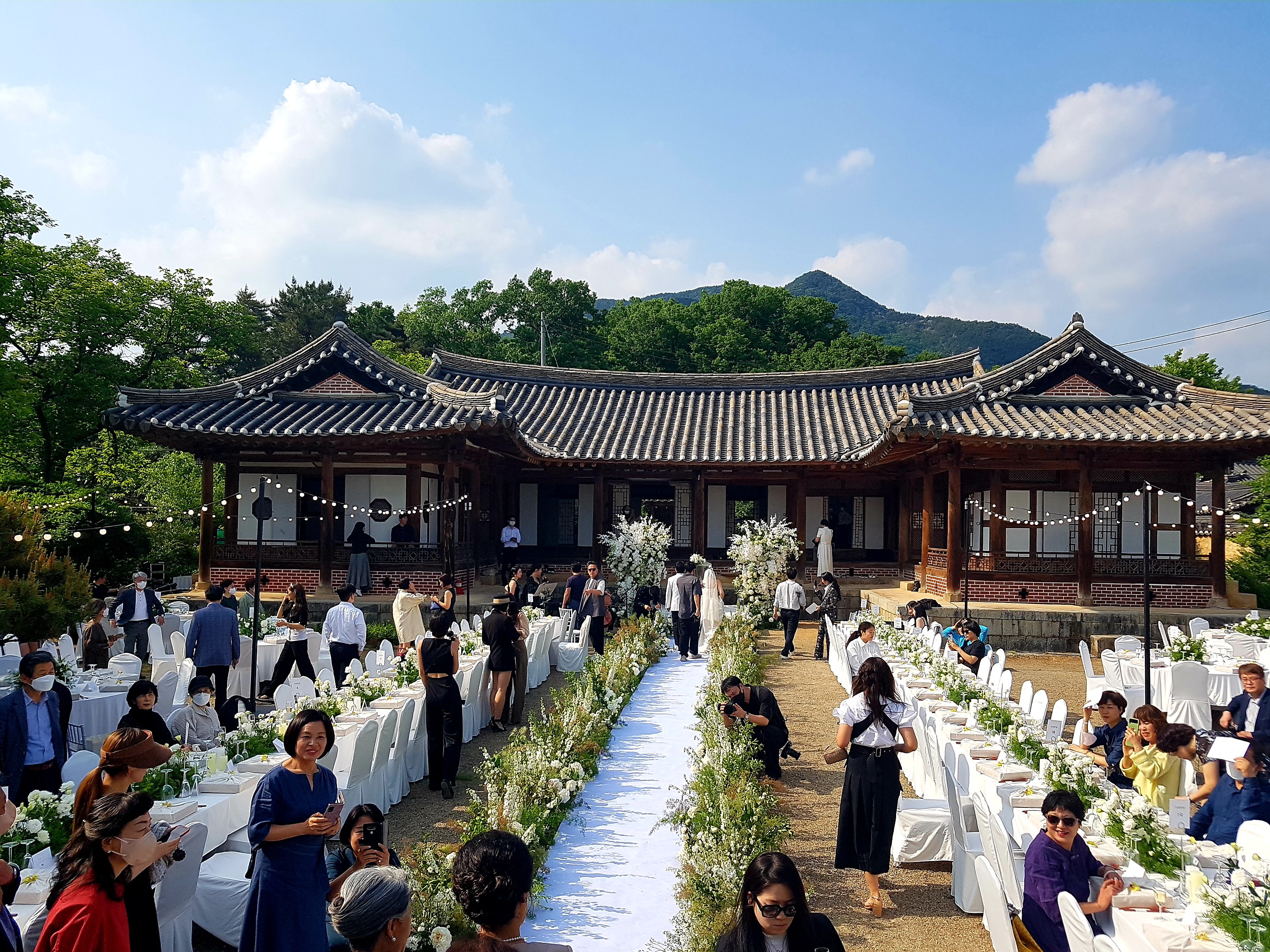 야외 결혼식이 열리고 있었다.