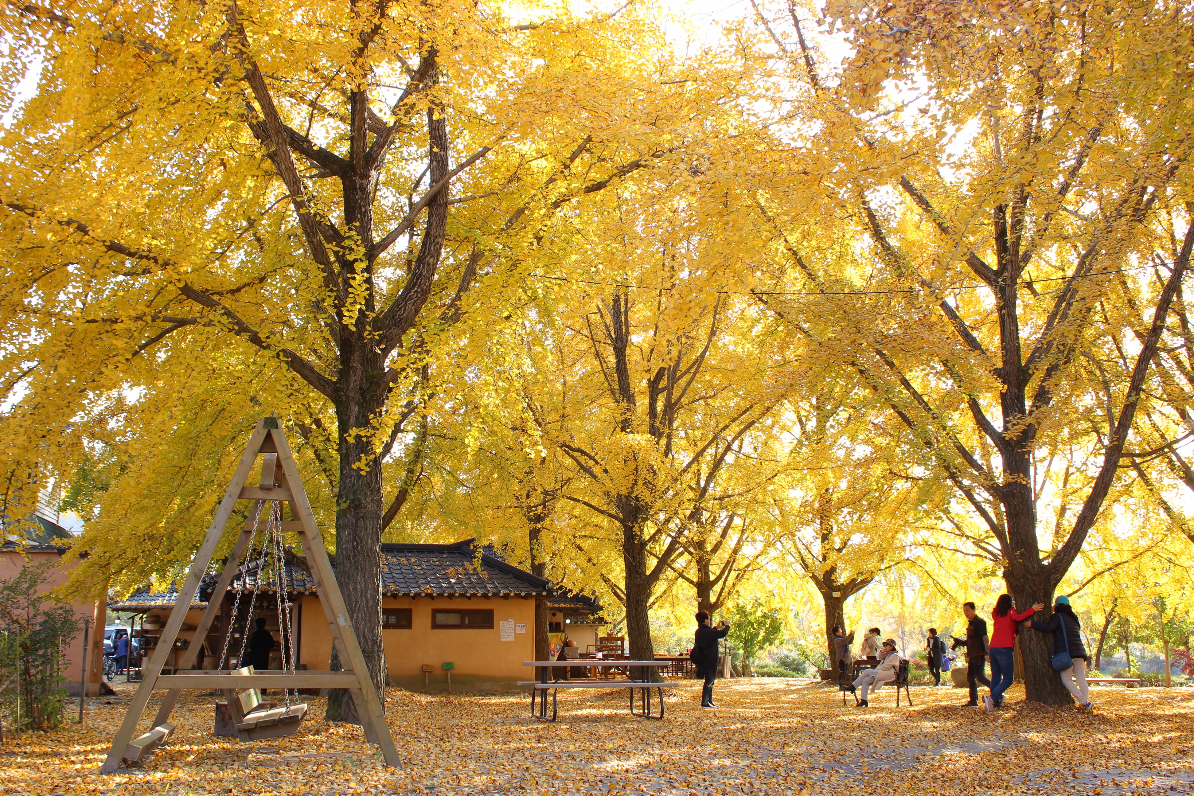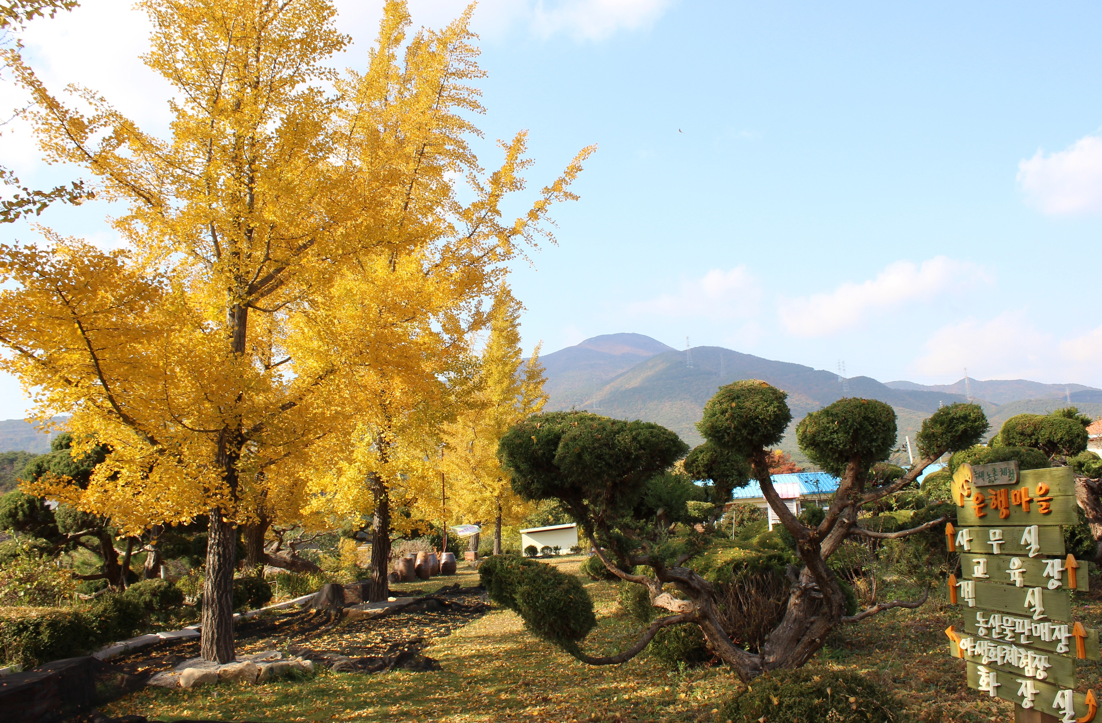 가을 노란 단풍잎이 환상적인 보령 청라 은행 마을