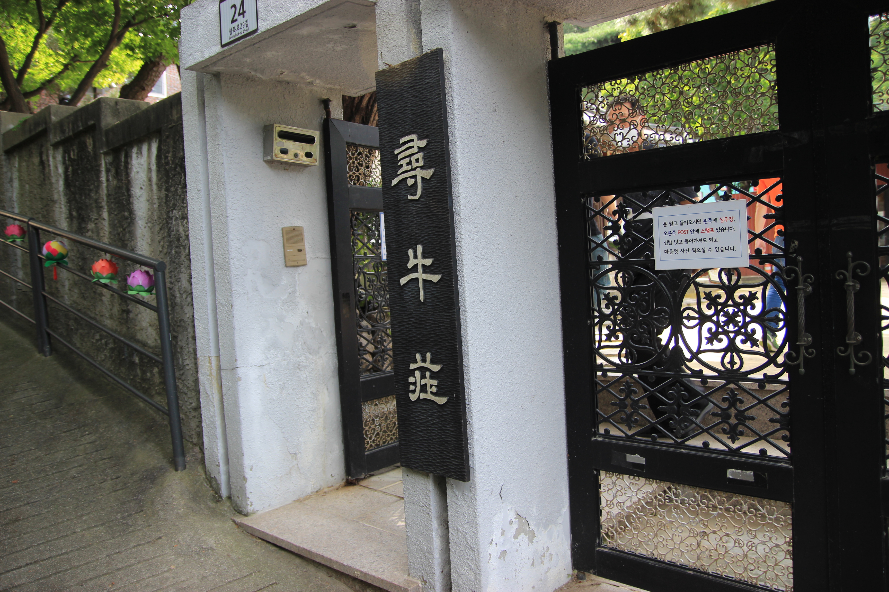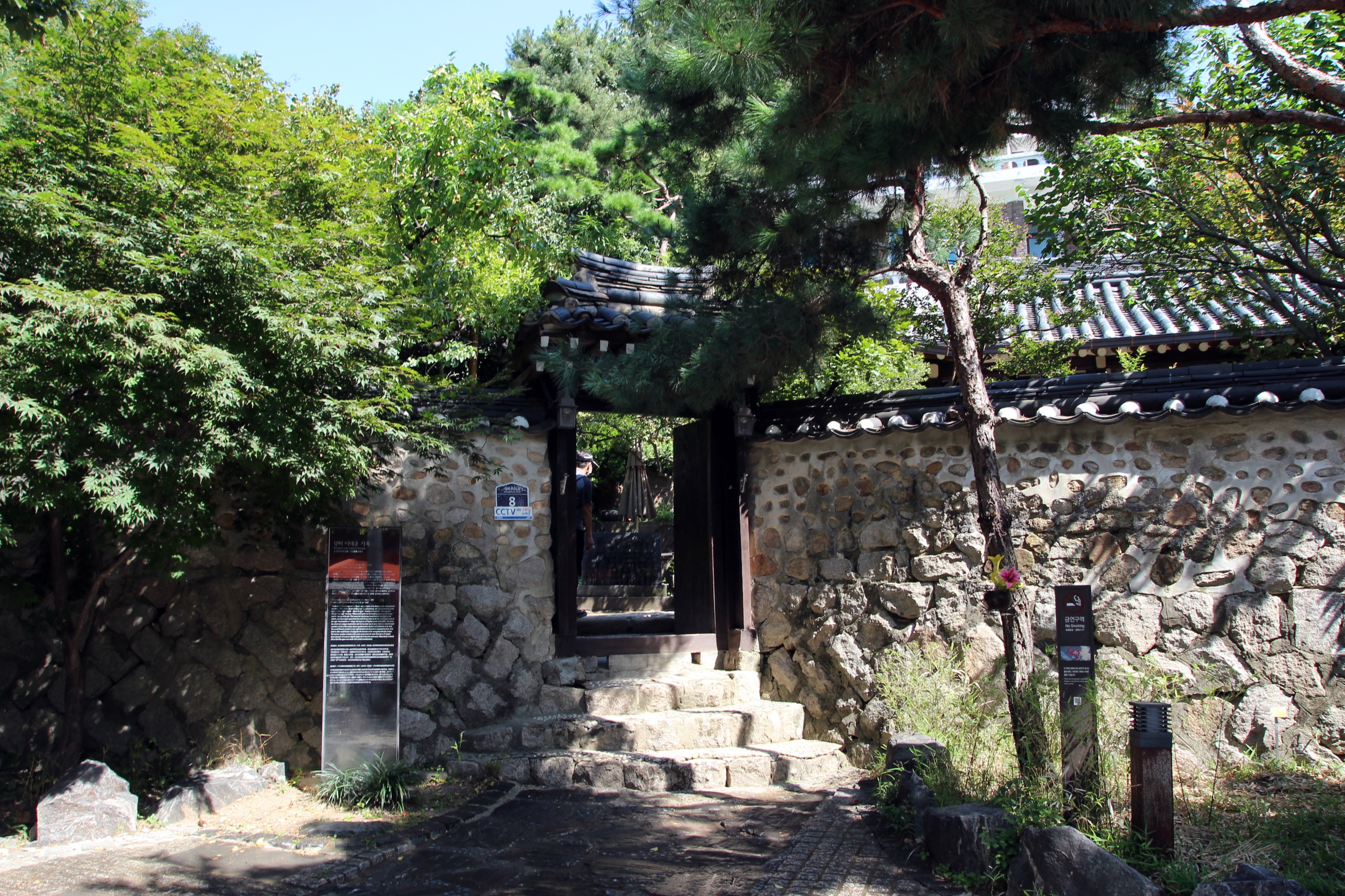 마당에는 성북구에서 지정한 아름다운 나무로 소나무와 향나무가 있으며 한켠에 올래여행(역사문화여행) 스탬프가 있는 우체통이 있다.<위키백과 인용>