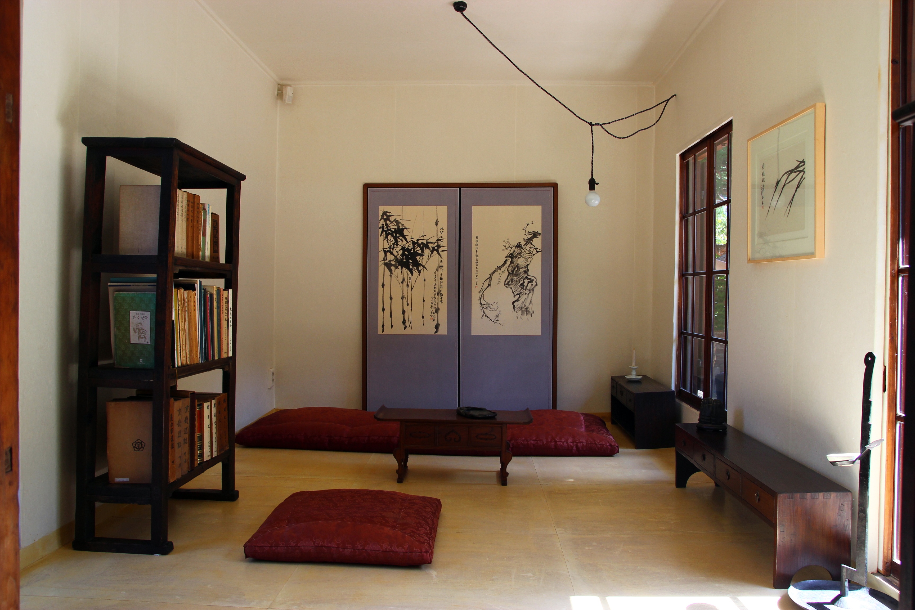 본채의 매심사(梅心舍) 현판 아래 쪽마루에는 최순우 선생의 책 『무량수전 배흘림 기둥에 기대서서』가 놓였다.