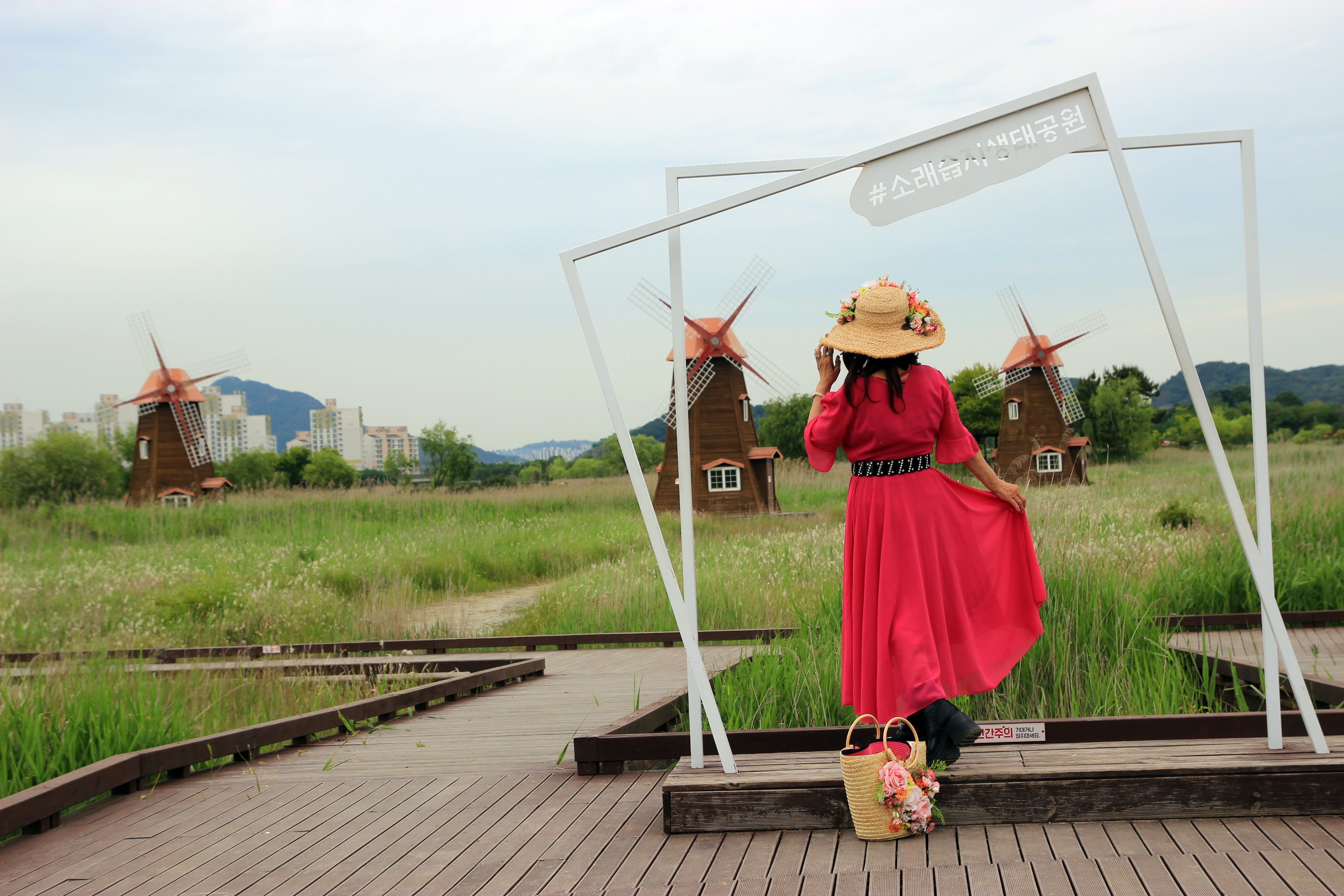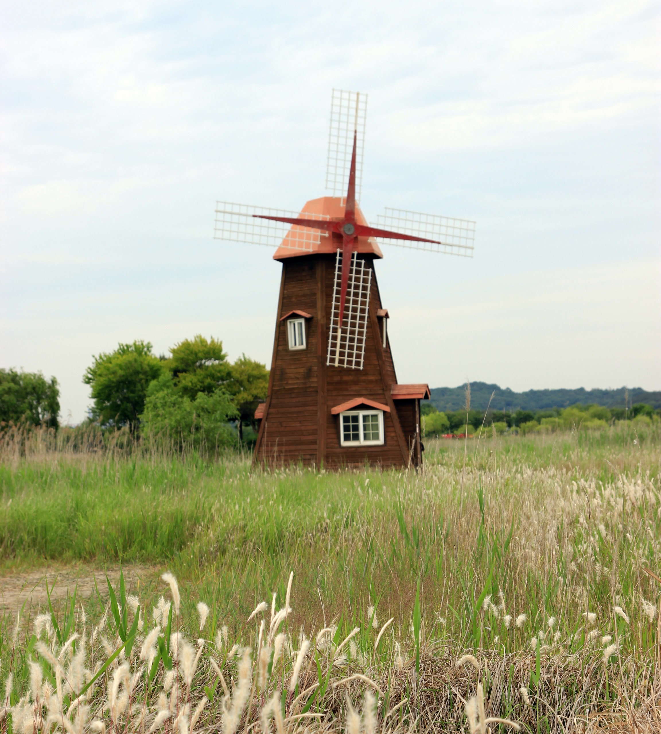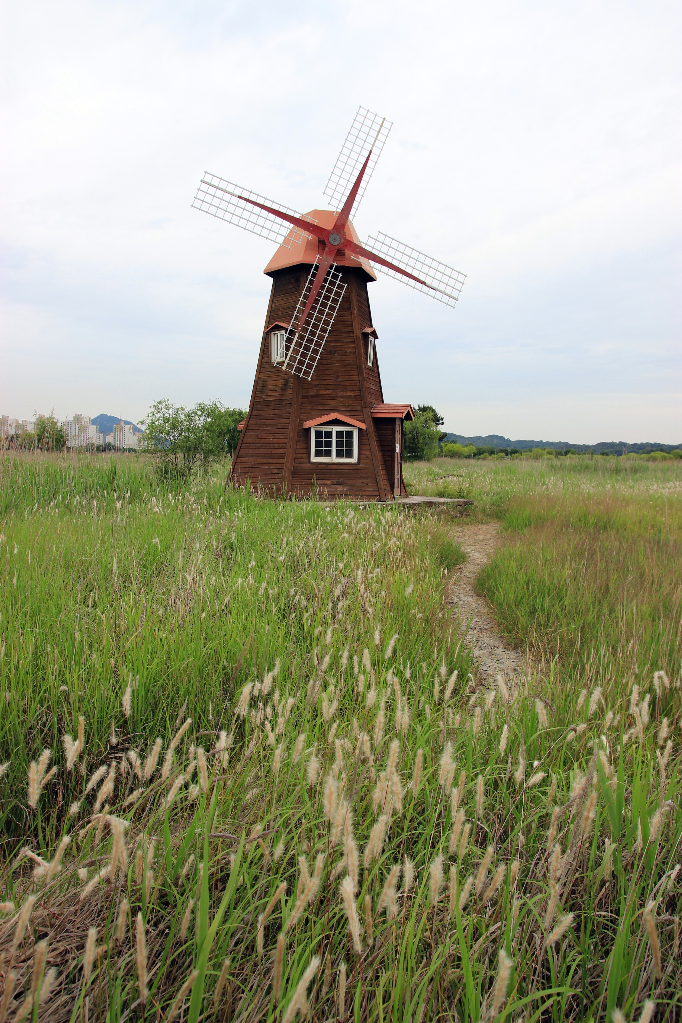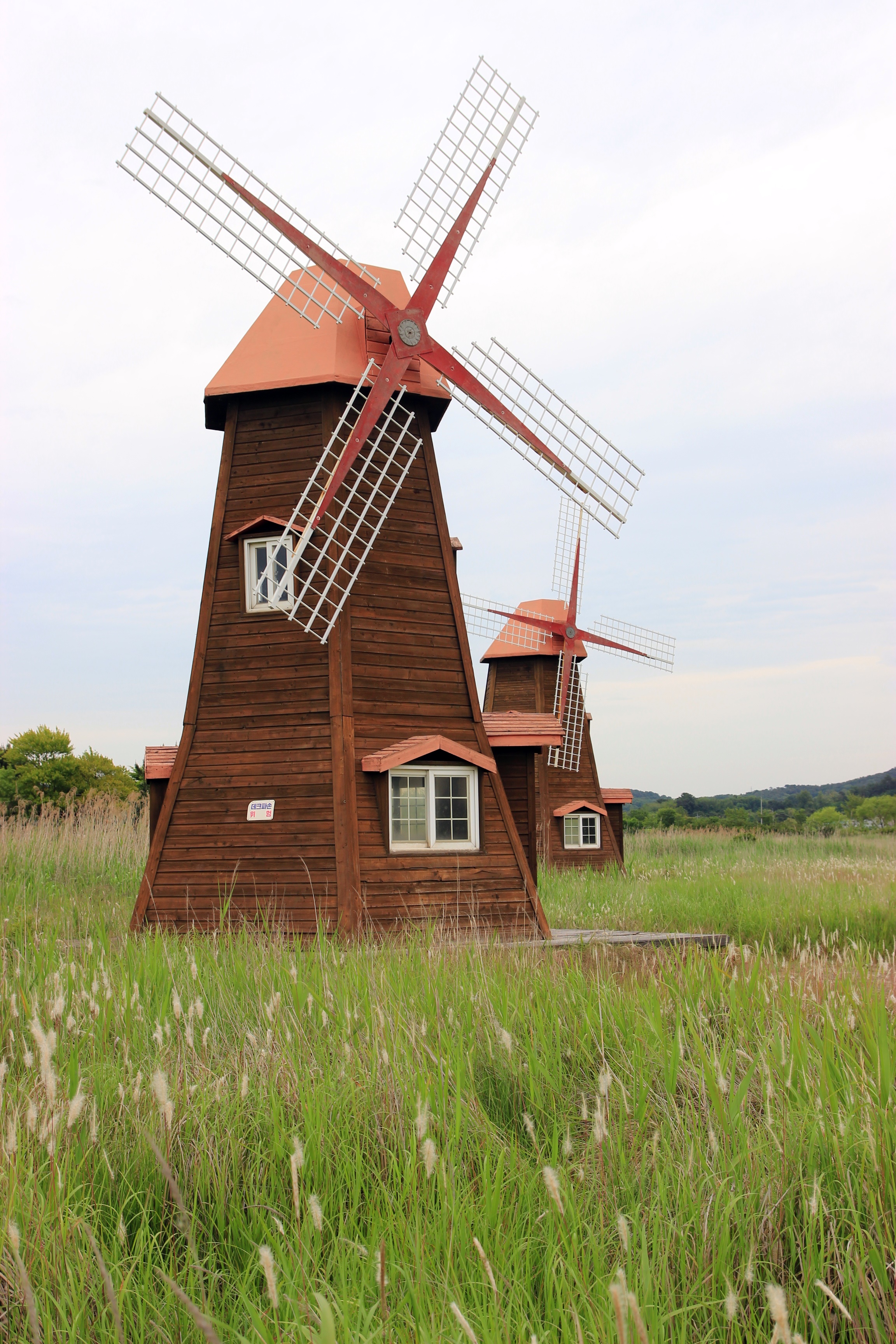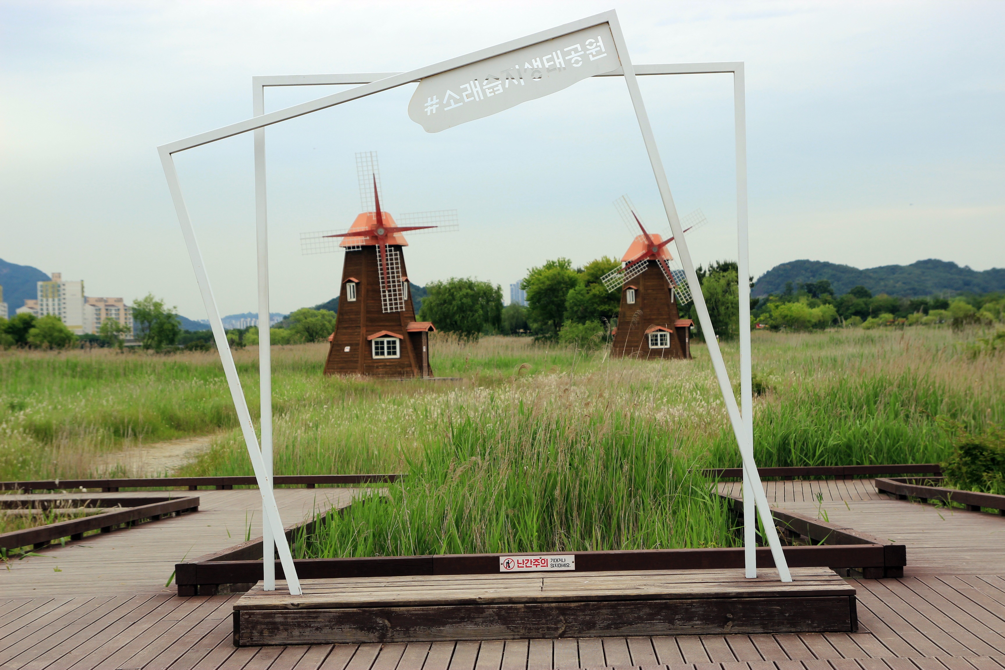 갈대가 조금 더 자라고 하얀 갈대꽃이 넘실거리는 가을이면 풍차가 더욱 운치있게 보이는 곳.